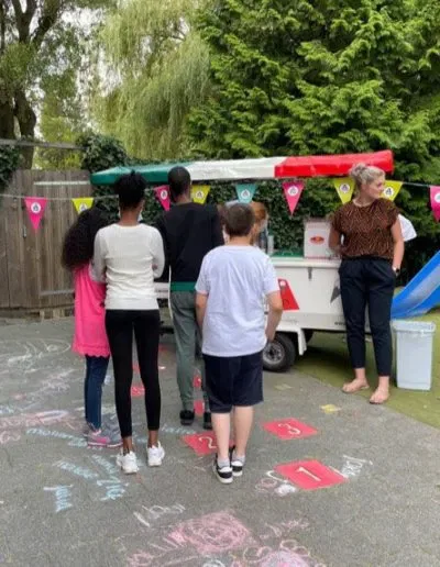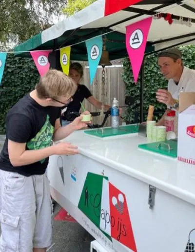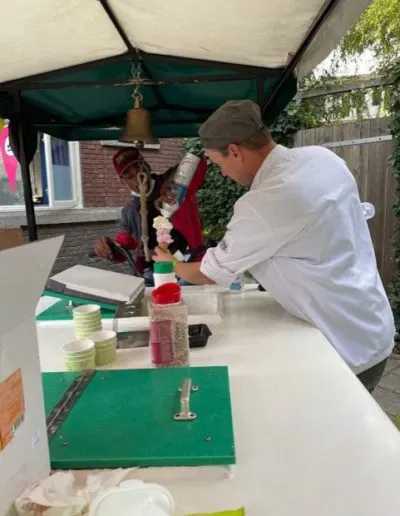 Op donderdagmiddag 9 september kwam onze vaste ijscoman weer langs om iedereen te voorzien van een ijsje. Iedereen mocht zelf kiezen wat hij/zij wilde. Een bakje of een hoorntje. Verschillende smaken, slagroom, snoepjes, sausje..alles was mogelijk. Er stond gezellige muziek op en het voorpleintje was versierd. Het was een geslaagde middag. De leerlingen hebben genoten van deze middag en natuurlijk van het ijsje.