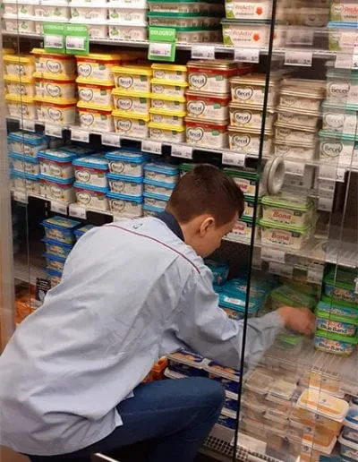 In de lessen Handel en Economie wordt er op dit op dit moment gewerkt aan het aanleren van winkelvaardigheden. De leerlingen zijn bezig om klanten te helpen, die boodschappen komen doen. Hierbij leren ze in 5 stappen sociale vaardigheden, waardoor ze een klant beter kunnen helpen (groeten , opdracht herhalen, meelopen, product geven en fijne dag wensen). Zelf hebben ze spontaan een rollenspel bedacht met boodschappen doen en de kassa. Daarnaast hebben ze geoefend met spiegelen. Ook hierbij worden weer vaste stappen gebruikt bij het aanleren. (van boven naar beneden, van links naar rechts, naar voren, vol en facing (=merk goed zichtbaar)) Het resultaat ervan was een netjes gespiegeld schap en trotse leerlingen. Binnenkort gaan de leerlingen ter afsluiting van dit project naar de Albert Heijn in de Keizerwaard om de vaardigheden (spiegelen en klanten helpen) in de levensechte winkel-wereld toe te passen.